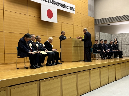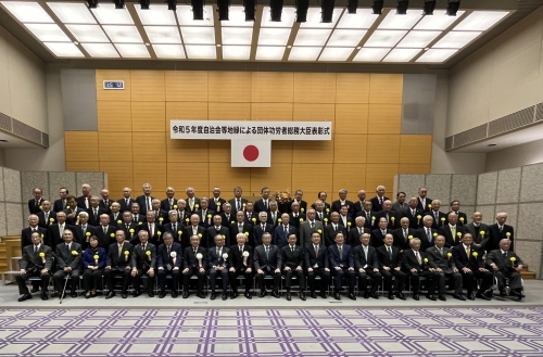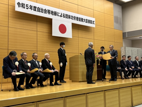 令和5年11月30日、令和5年度の総務大臣表彰式が同省において行われ、長谷川敬二全自連会長が来賓を代表し、祝辞を述べました。この表彰は、自治会・町内会等の地縁による団体の代表として多年にわたり在籍し、良好な地域社会の維持及び形成に顕著な功績があったと認められる方に対し、総務大臣が表彰を行うものです。