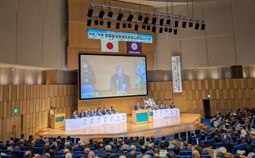 令和7年10月23日、全国自治会連合会の全国大会が富山県富山市で開催され、大会会場の富山国際会議場には、全国から約600名余りの関係者が出席しました。